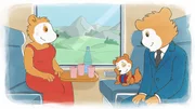 Bobo fährt mit dem ZugBobo schläft auf seinem Sitz im Zug.Bild: © JEP ANIMATION/WDR