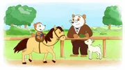 Bobo, Opa und die TiereSein Opa sieht Bobo beim Reiten auf einem Pony zu.Bild: © JEP ANIMATION/WDR