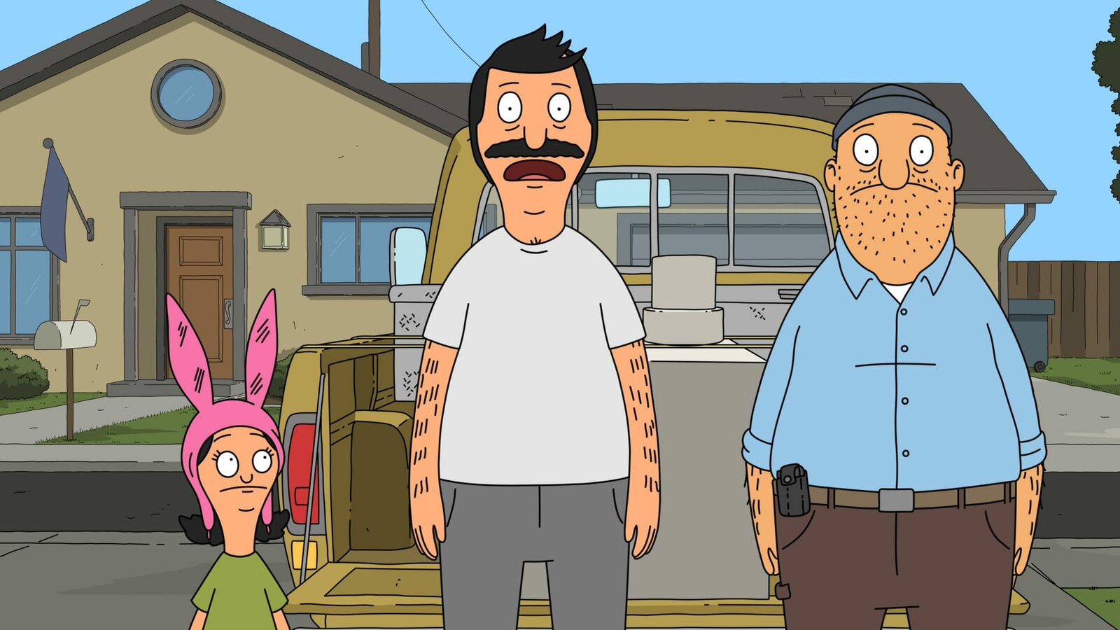 Gene allein zu HausL-R: Louise, Bob, TeddyBild: © ViacomCBS / BOB'S BURGERS 2021 by 20th Television.