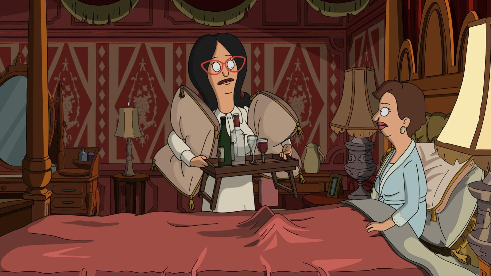 Gayles GeschichtenIst ein Treffen mit Tante Gayle (r.) wirklich besser als Hausarrest? Gene (l.) hat zumindest ganz besondere Vorstellungen zu dem Treffen ...Bild: © ViacomCBS / FOX / BOB'S BURGERS ™ and © 2015 TCFFC ALL RIGHTS RESERVED.