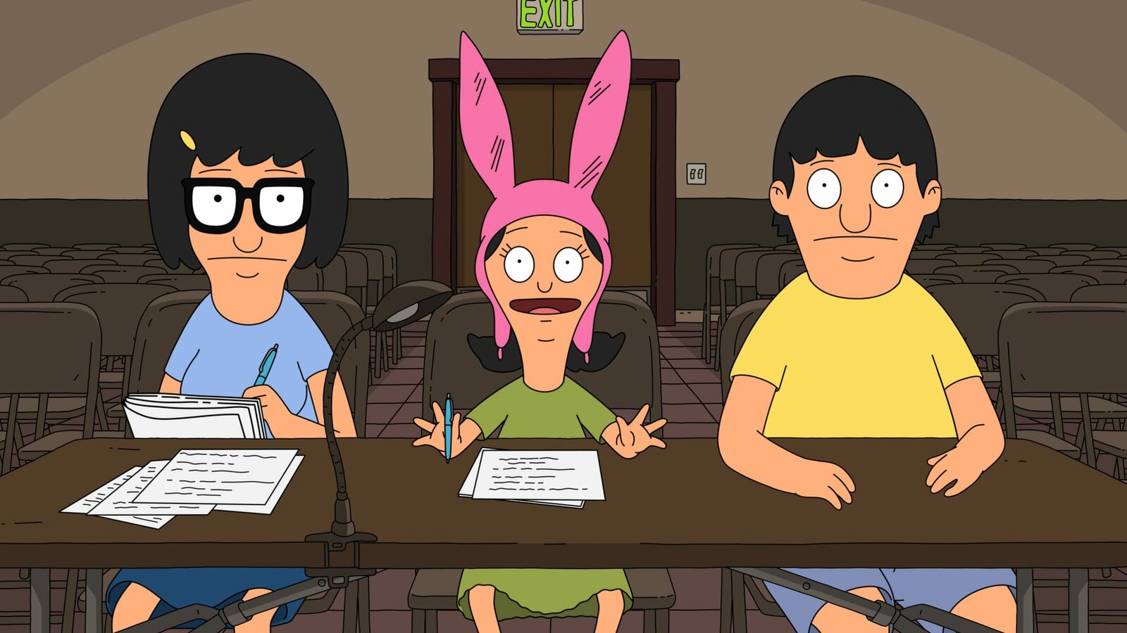 Ey Kleber, wo is' mein Bob?Vorne, l-r: Gene, Louise, TinaBild: © ViacomCBS / FOX / FOX BROADCASTING / BOB'S BURGERS ™ and TCFFC ALL RIGHTS RESERVED