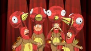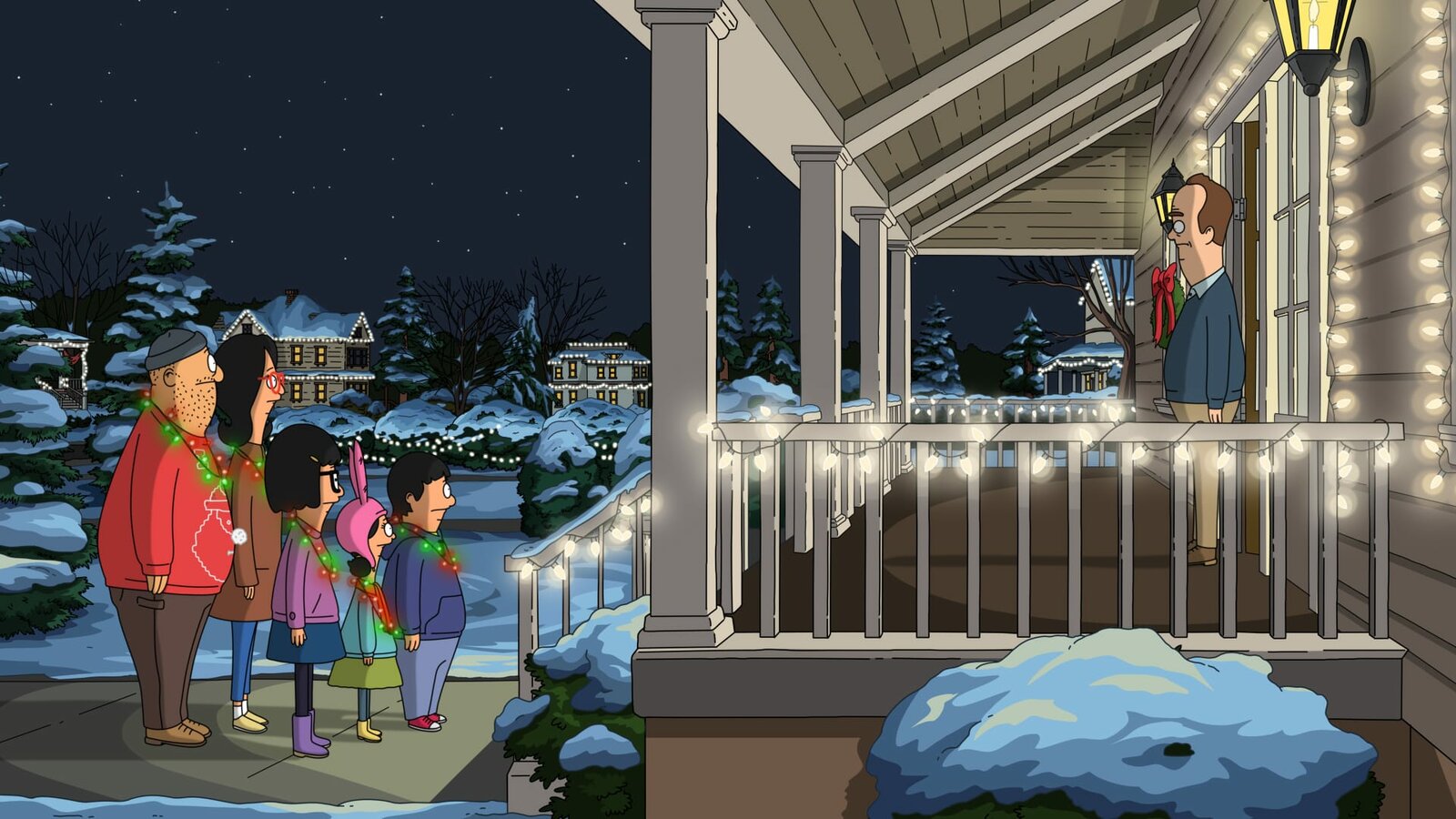 Der Freundfeind in meinem BettTina allows Tammy to spend Spring Break with the Belchers in the "Sleeping with the Frenemy" episode of Bob's Burgers (in the picture, l-r: Louise, Teddy, Gene, Bob, Linda).Bild: © Comedy Central / FOX
