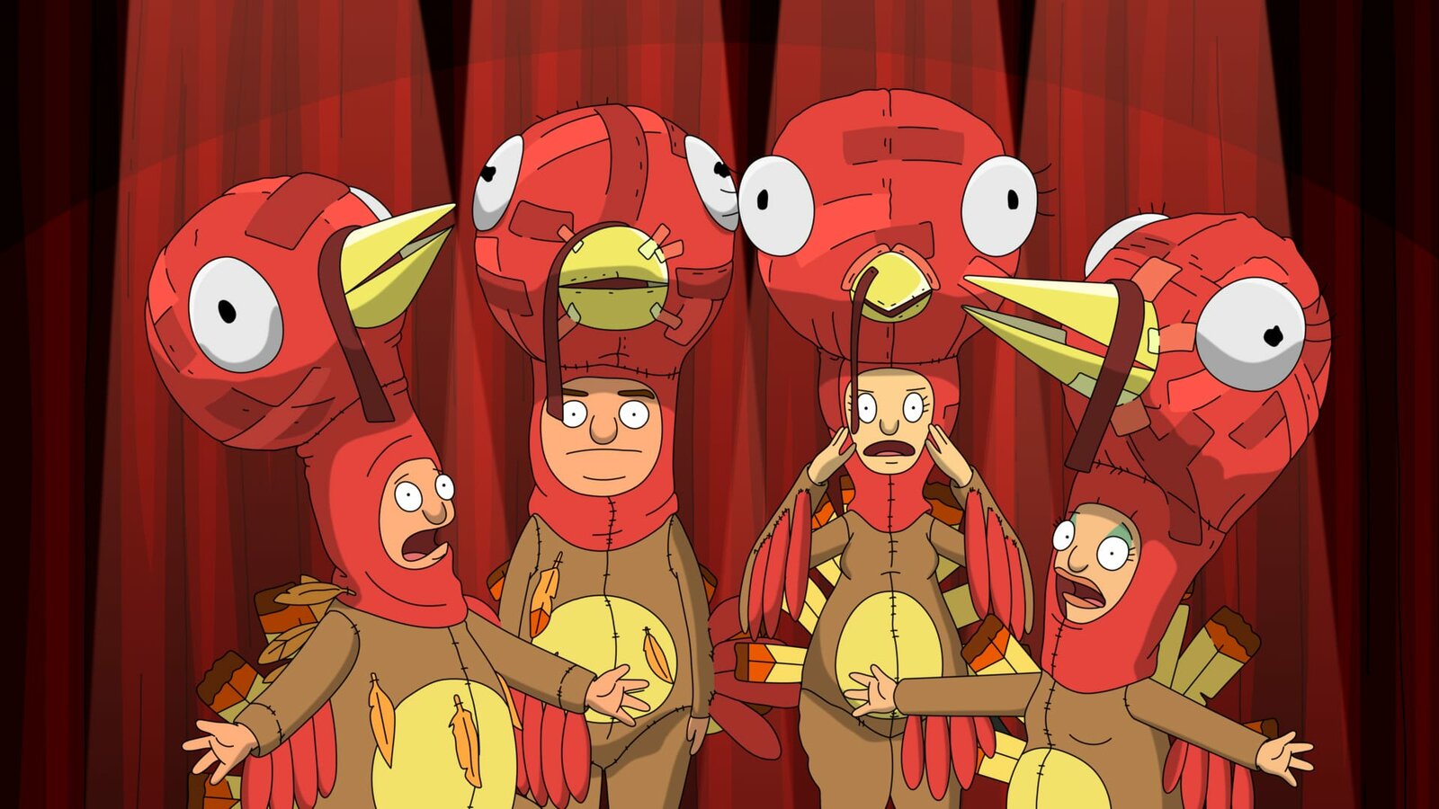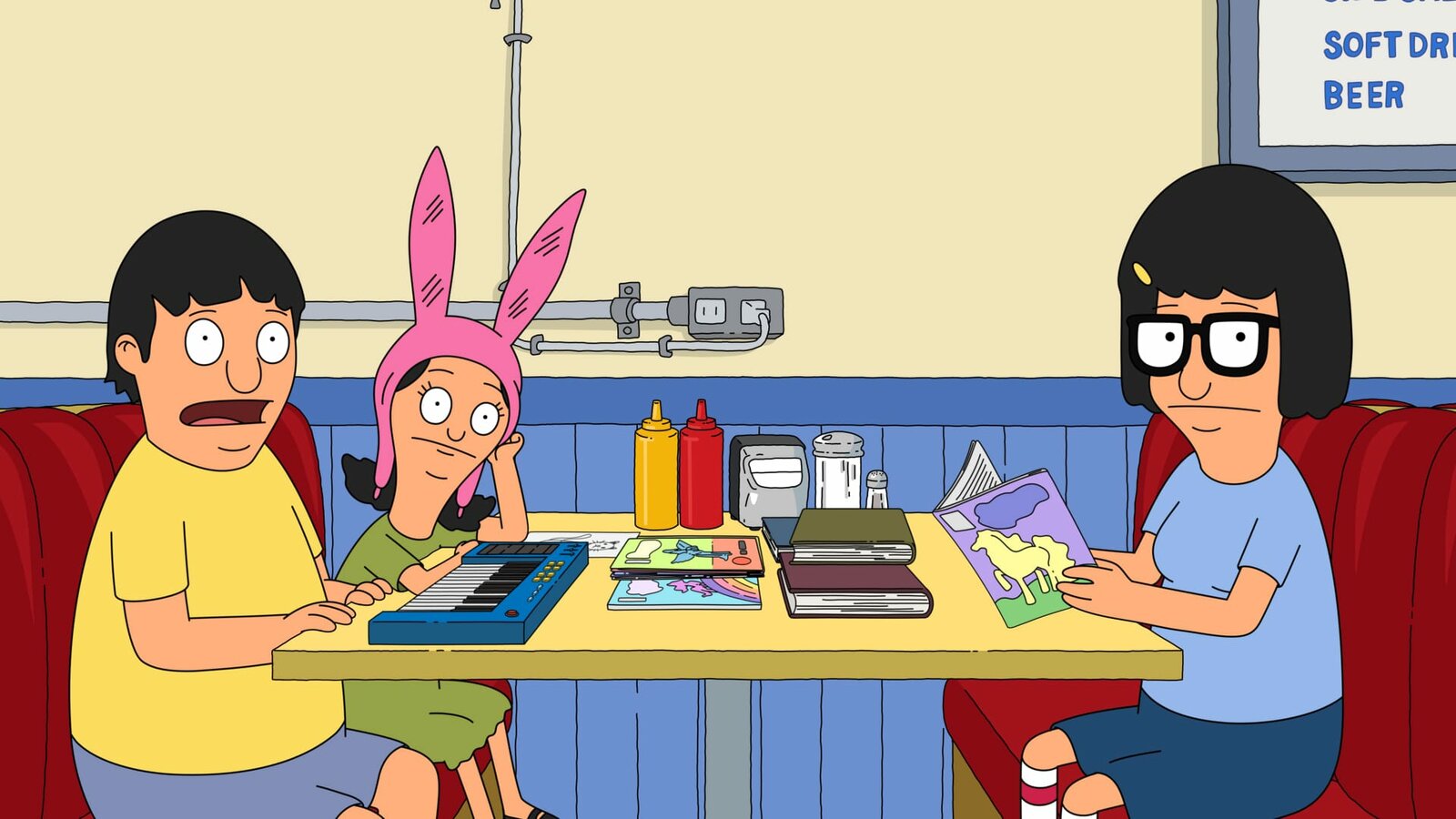 Schönen ValentinstagL-R: Tina, Bob, Louise, Gene, LindaBild: © ViacomCBS / FOX / FOX BROADCASTING / BOB'S BURGERS and TCFFC ALL RIGHTS RESERVED.