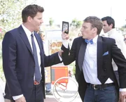 Mondäne Maden im MachoBONES: Booth (David Boreanaz, R) questions a bouncer (guest star Antonio Sabato Jr. L) at a night club on the Jersey Shore in the BONES episode "The Maggots in the Meathead" airing Thursday, Oct 7 (8:00-9:00 PM ET/PT) on FOX. ©2010 Fox Broadcasting Co. Cr: Ray Mickshaw/FOX.Bild: © ATV
