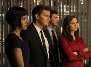Nach dem Tod und vor dem FriedenBU: (v.li.): Dr. Camille Saroyan (Tamara Taylor), Special Agent Seeley Booth (David Boreanaz), Dr. Lance Sweets (John Francis Daley) und Dr. Temperance "Bones" Brennan (Emily Deschanel)BB: achte Staffel, OT: The Ghost in the Machine Bones_Ep817_The_Ghost_in_the_machine_sc_23_0076Bild: © ATV