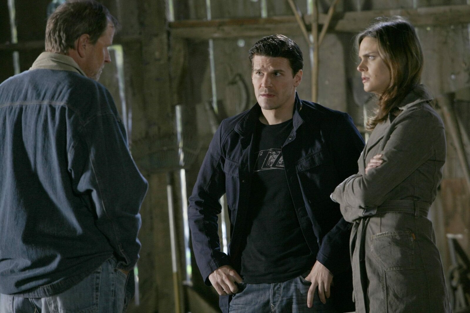 Die Frau aus der VergangenheitDie Suche nach der Wahrheit über Brennans (Emily Deschanel) Vergangenheit führt sie und Agent Booth (David Boreanaz, M.) zu Vince McVicar (Pat Skipper). Weiss er, was mit Brennans Eltern passiert ist?Bild: © ATV