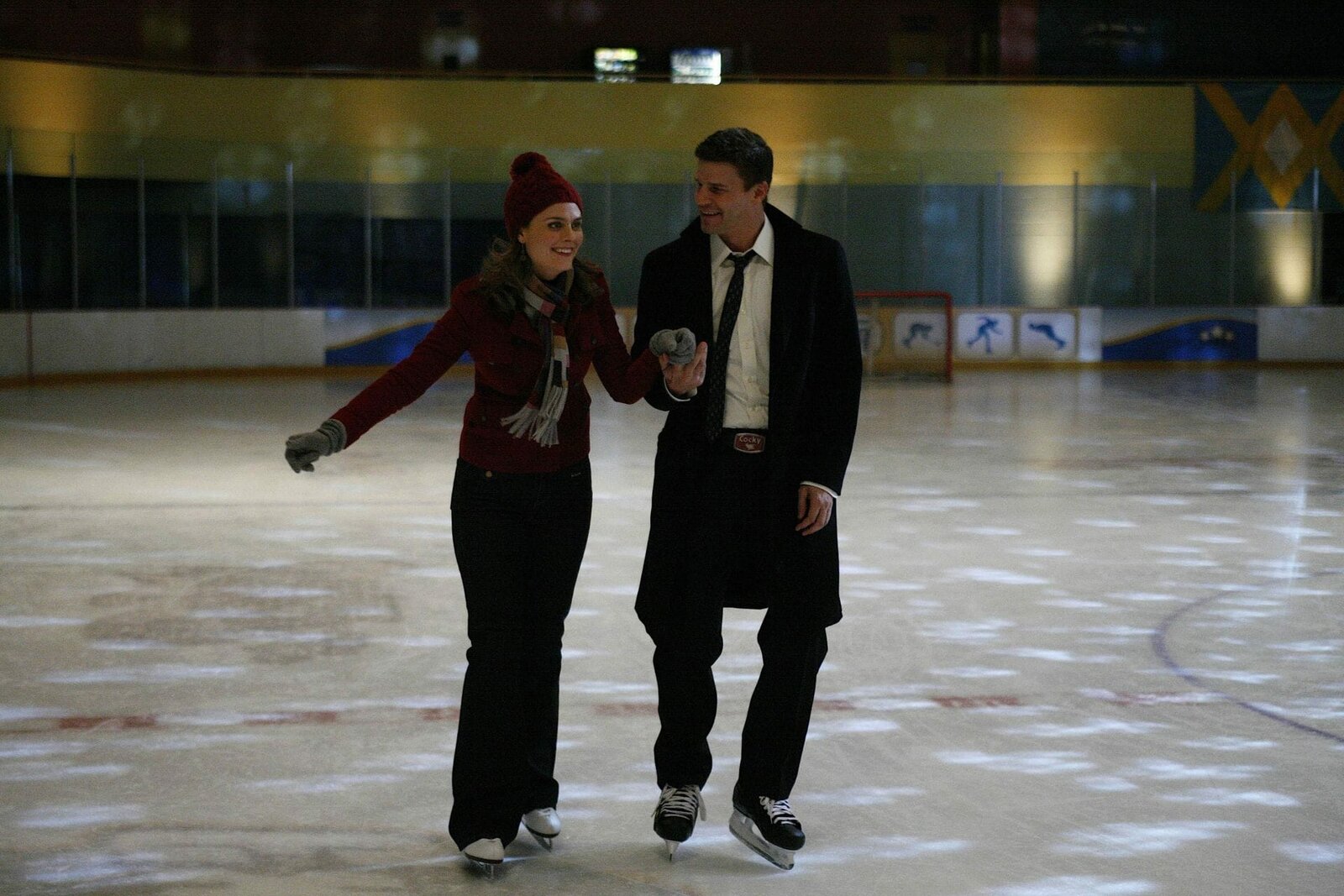 Die Unbeliebtheit und der TodBONES: Booth (David Boreanaz, R) teaches Brennan (Emily Deschanel, L) to skate in the second hour of the BONES 2-hour time period premiere "Double Trouble in the Panhandle/Fire in the Ice" airing Thursday, Jan. 22 (8:00-10:00 PM ET/PT) on FOX. ©2009 Fox Broadcasting Co. Cr: Greg Gayne/FOXBild: © ATV