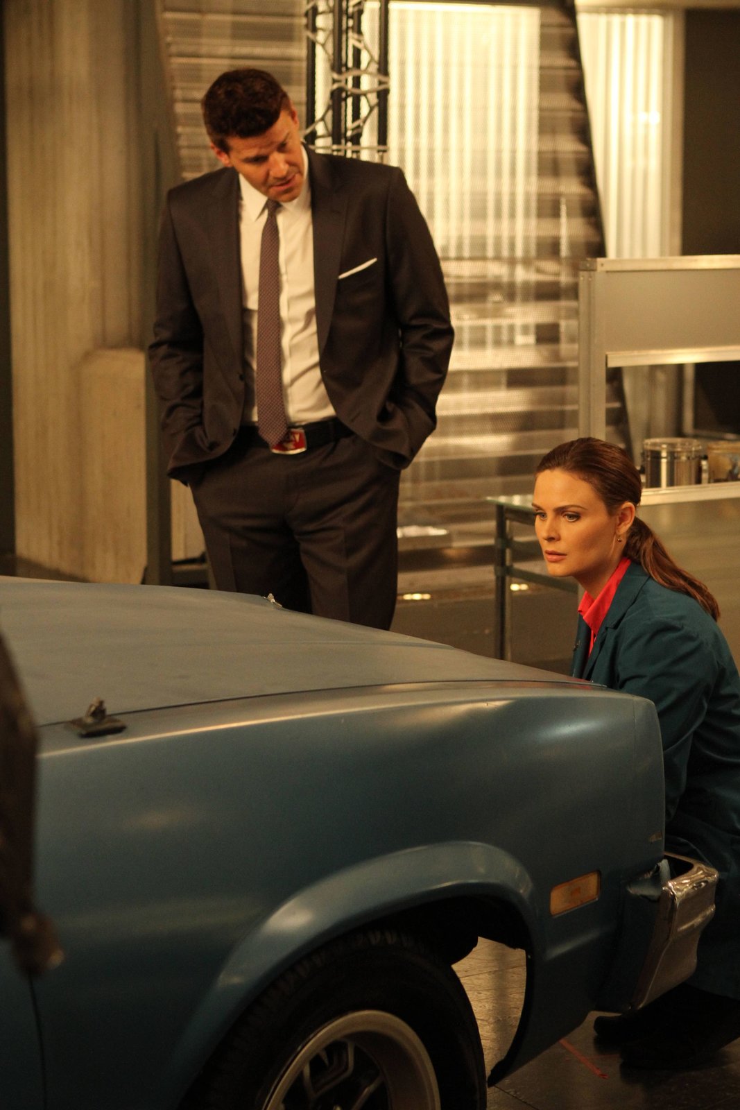 Klebt eine Leiche am Künstler ...BU: Dr. Temperance "Bones" Brennan (Emily Deschanel) und Special Agent Seeley Booth (David Boreanaz)BB: achte Staffel, OT: The Ghost in the Machine Bones_Ep817_The_Ghost_in_the_machine_sc_11_0186Bild: © ATV