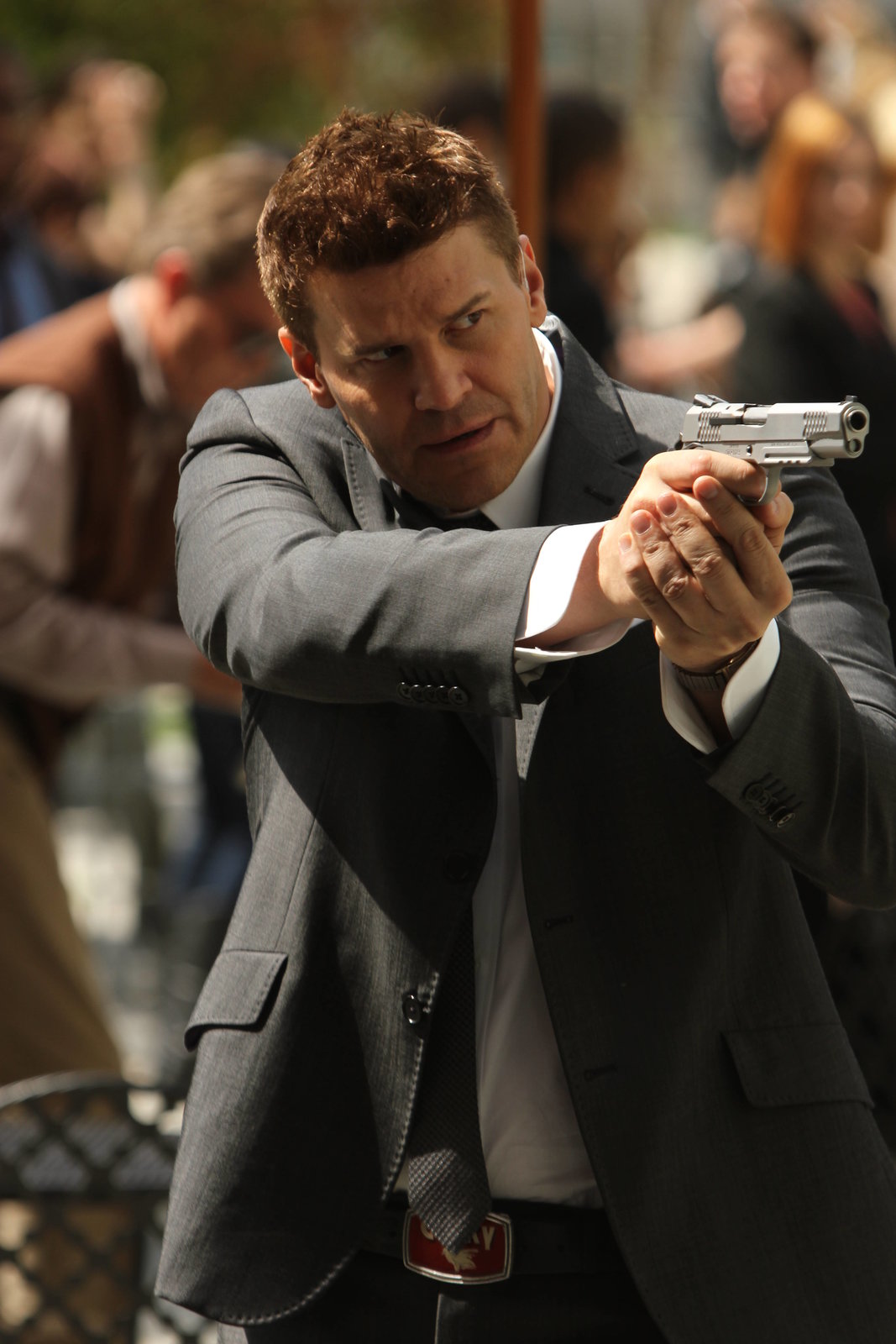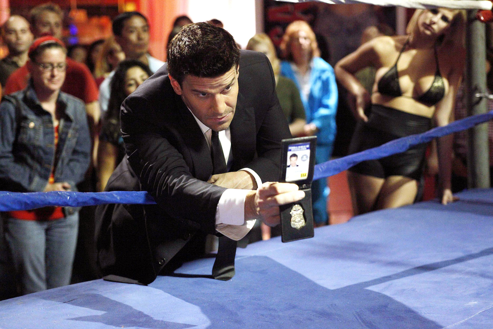 Ein Zwerg, reich und tot, war einmal in NotBooth (David Boreanaz) untersucht den Mord an einem kleinwüchsigen Mann, der als aufgehender Stern unter Wrestling-Fans galt.Bild: © 4+
