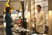 Die Frau am FlughafenBrennan (Emily Deschanel) und Booth (David Boreanaz) untersuchen die Körperteile einer Frau, die nahe des internationalen Flughafens in Los Angeles gefunden wurden.Bild: © RTL