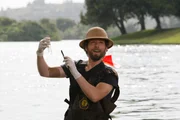 Die Schwangere in der BuchtHodgins (TJ Thyne) tests the Chesapeake Bay water when the team investigates the remains of a murdered woman and her baby.Bild: © 2006 Fox Broadcasting Co. Photo: Carin Baer