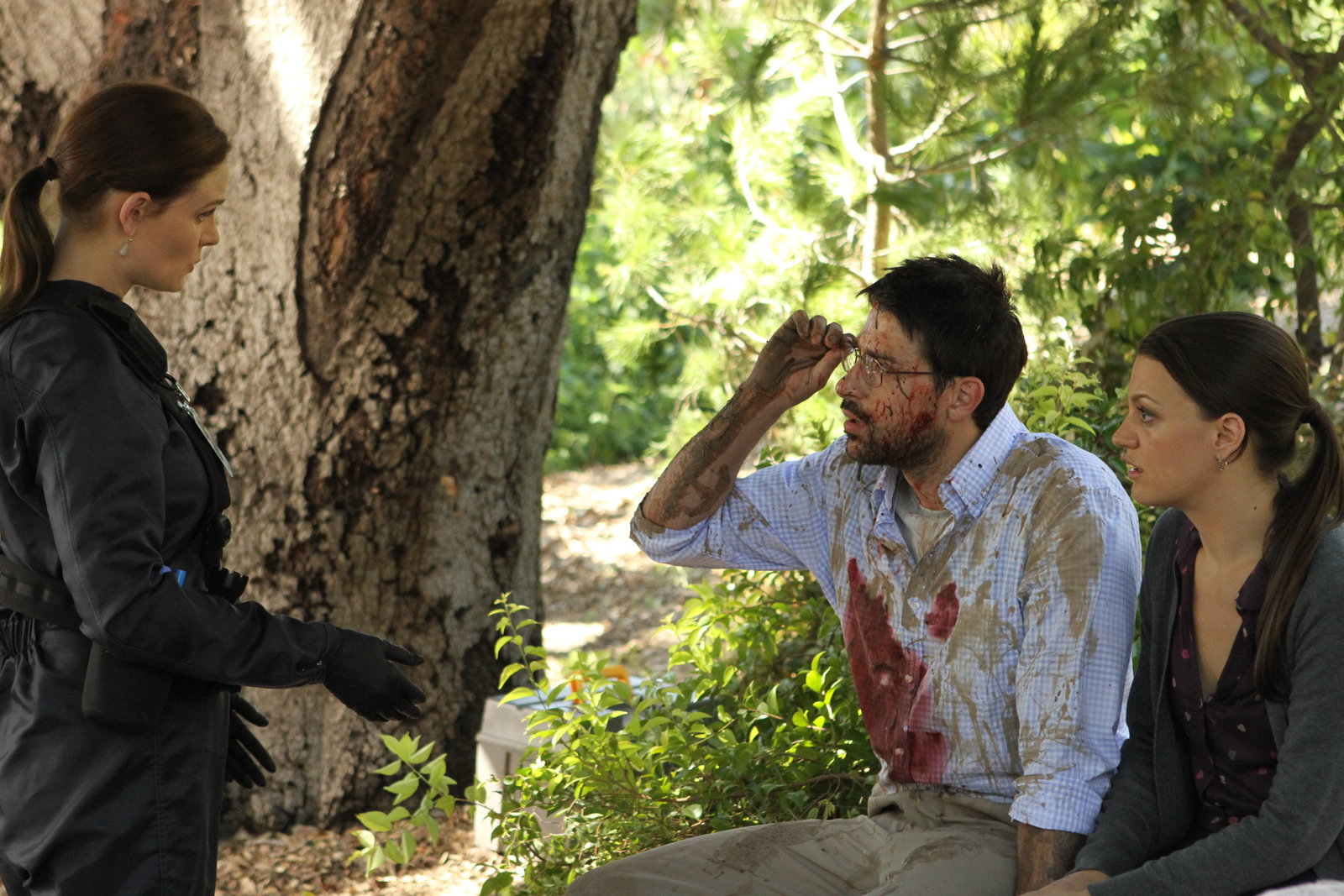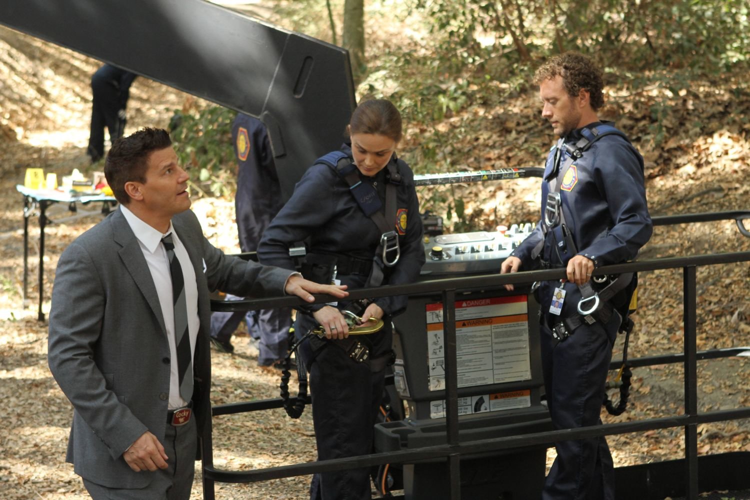 Träume, Tiger, TagelöhnerEpisodentitel: Träume, Tiger, TagelöhnerBU: Brennan (Emily Deschanel, li.) befragt Costas (Ryan Caltagirone) und seine Frau Lucia (Audrey Dundee Hannah), die bei dem Versuch ihr festgefahrenes Auto frei zu bekommen auf eine Leivhe gestoßen sind.BB: achte Staffel, OT: The Tiger in the Tale Bones_Ep803_Bones_and_Booth_face_off_sc_3_0716Bild: © ATV