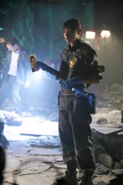 Mädchenkopf mit MaskeBooth et Brennan enquêtent sur la découverte d'un corps dans la baie de Chesapeake. La partie du cadavre qu'ils examinent semble être un torse féminin, vu qu'ils y découvrent des implants mammaires. Et pourtant d'autres indices conduisent Booth et Brennan à se rendre dans une petite église du Maryland, où ils apprennent que la victime était pasteur. L'autre partie du cadavre retrouvée vient corroborer cette version des faits et tout porte à croire que la victime possédait à la fois les caractéristiques d'un homme et d'une femme.Bild: © Credit: (323),