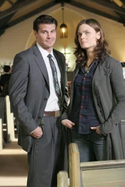 Der Mann mit dem KnochenBrennan (Emily Deschanel, L) and Booth (David Boreanaz, R).Bild: © W9