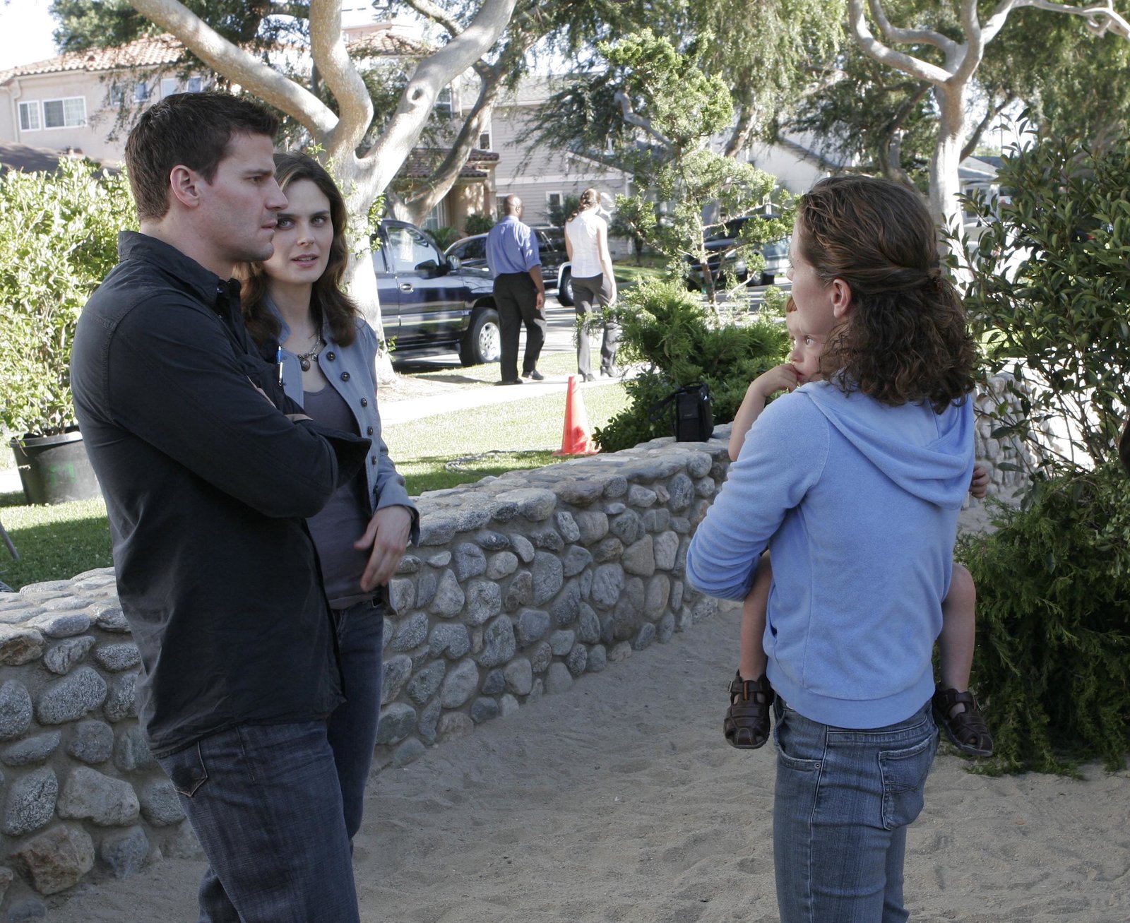 Die Schwangere in der BuchtBooth (David Boreanaz, second from L) is concerned about his son (Ty Panitz, R).Bild: © 4+