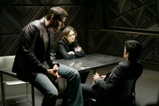 Die junge Frau im KronleuchterBooth (David Boreanaz, L) and Brennan (Emily Deschanel, C) question a suspect (Andres Londono, R) when a young woman is found burned to death in a hotel fire in the BONES episode "The Girl in Suite 2103".Bild: © 4+