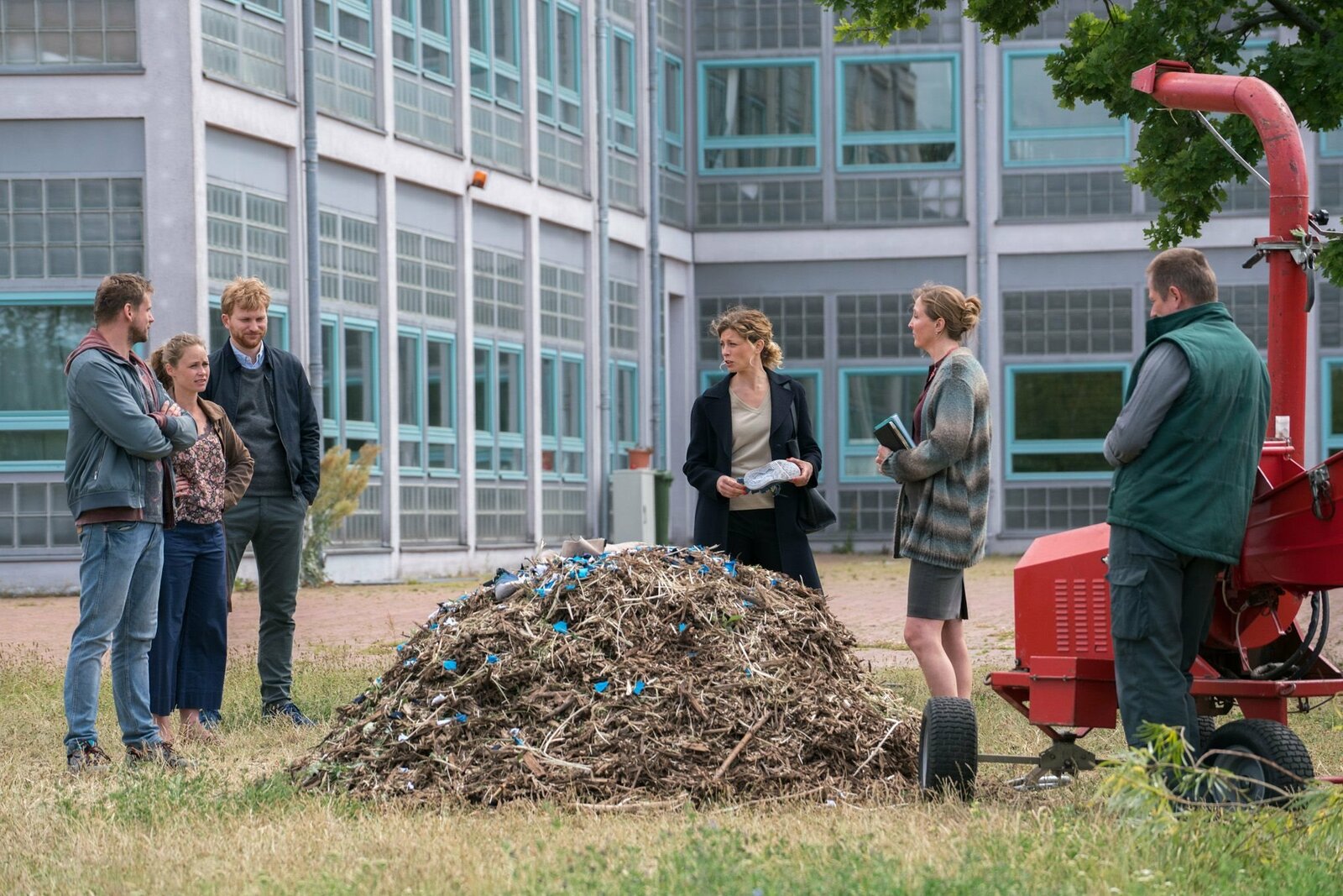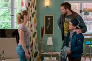 Die Eltern der Bonusfamilie sprechen mit der Schule über den "Häckslervorfall". Von links: Martin (Steve Windolf), Lisa (Inez B. David), Patrick (Lucas Prisor), Katja (Anna Schäfer) und Schuldirektorin (Anja Karamanski).Bild: © BR/good friends Filmproduktion/MDR/SWR/Oliver Vaccaro