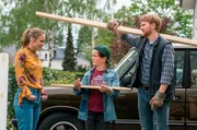 Kapitel 2Von links: Lisa (Inez B. David), Eddie (Fillin Mayer) und Patrick (Lucas Prisor) besprechen den Bau des Baumhauses.Bild: © BR/good friends Filmproduktion/MDR/SWR/Oliver Vaccaro