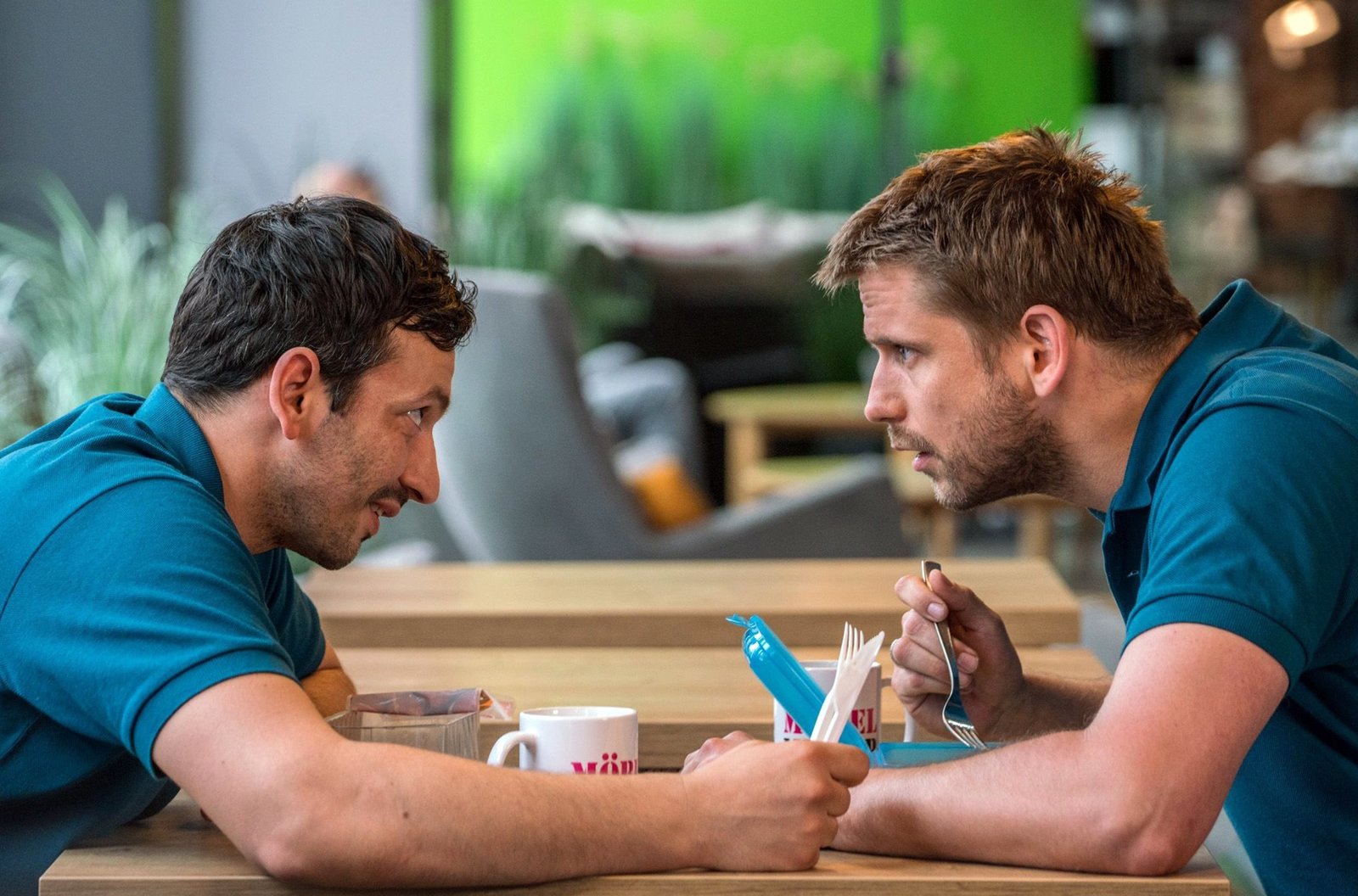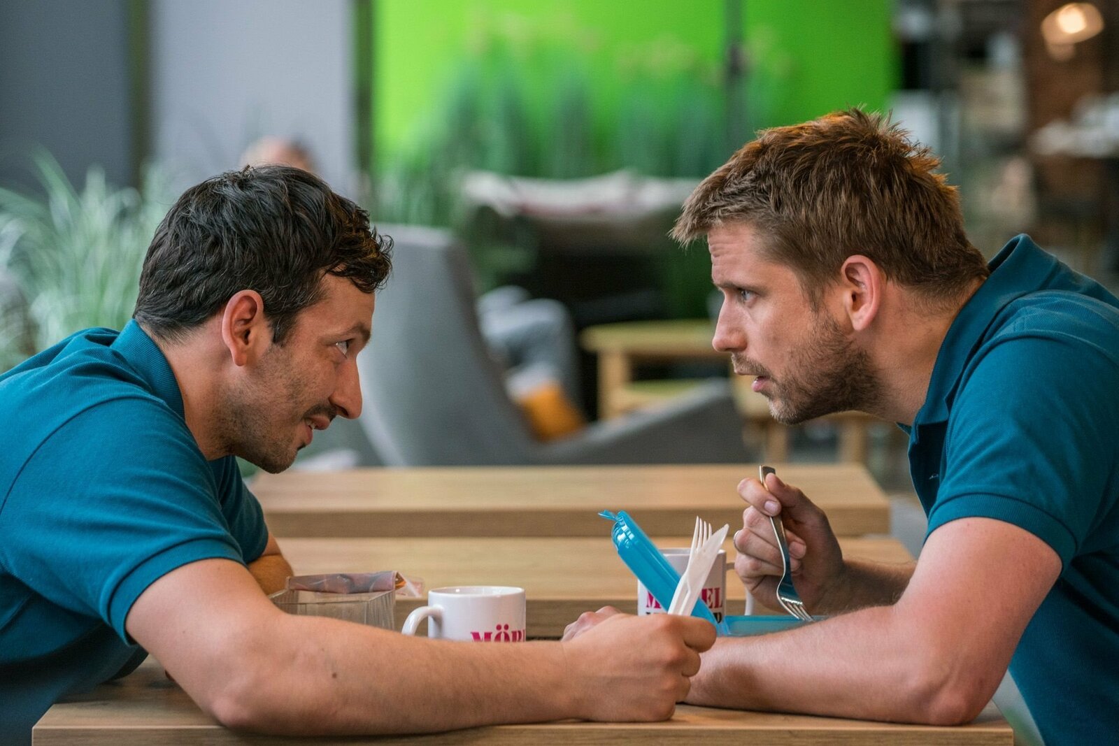 Kapitel 3Von links: Sebastian (Arnel Ta?i) und Martin (Steve Windolf) in der Mittagspause.Bild: © BR/good friends Filmproduktion/MDR/SWR/Oliver Vaccaro