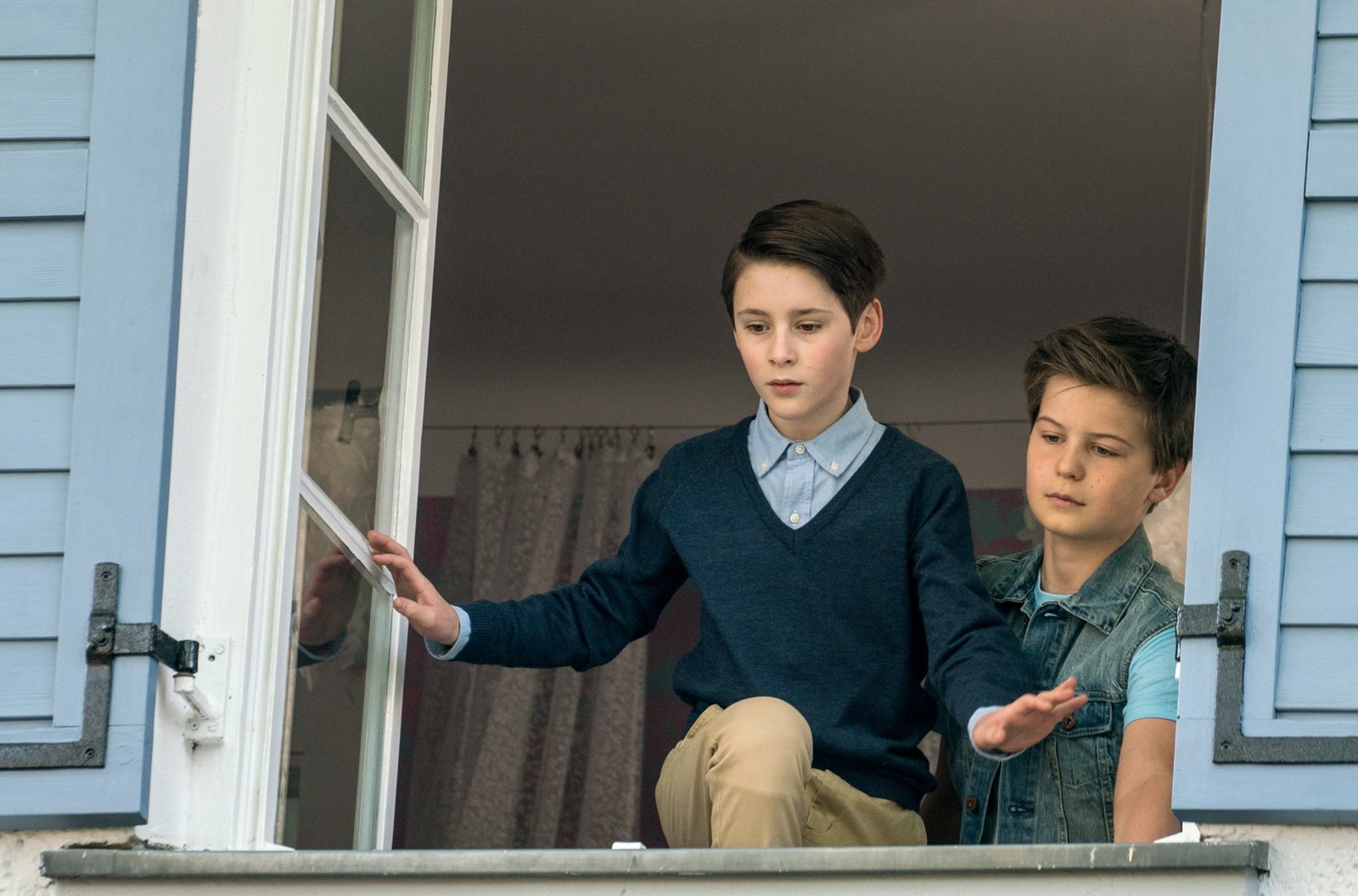 Kapitel 5Von links: William (Levis Kachel) und Hendrik (Matthias Lier) fragen Katja (Anna Schäfer), ob sie noch spielen dürfen.Bild: © BR/good friends Filmproduktion/BR/good friends Filmproduktion/MDR/SWR/Oliver Vaccaro