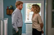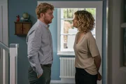 Kapitel 1Patrick (Lucas Prisor) begrüßt seine Ex, Katja (Anna Schäfer), im neuen Haus der Patchwork-Familie.Bild: © BR/good friends Filmproduktion/MDR/SWR/Oliver Vaccaro