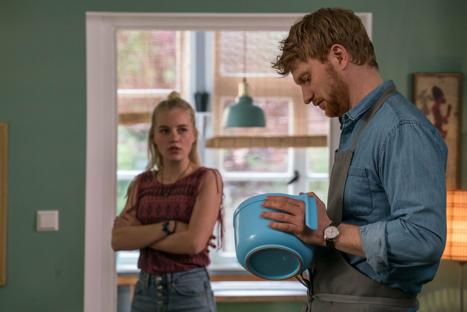 Kapitel 5Lisas Tochter Bianca (Louise S. Arnold) ist sauer, dass Patrick ihren Matteo ausgefragt hat.Bild: © BR/good friends Filmproduktion/BR/good friends Filmproduktion/MDR/SWR/Oliver Vaccaro
