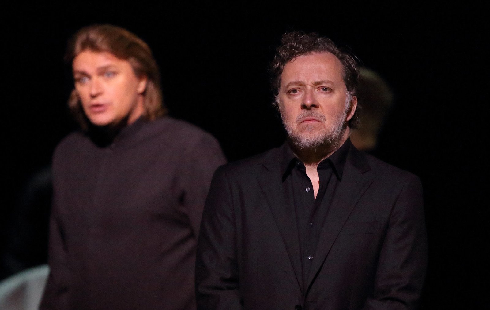 Von links: Klaus Florian Vogt als Tannhäuser und Christian Gerhaher als Wolfram von Eschenbach.Bild: © BR/Wilfried Hösl