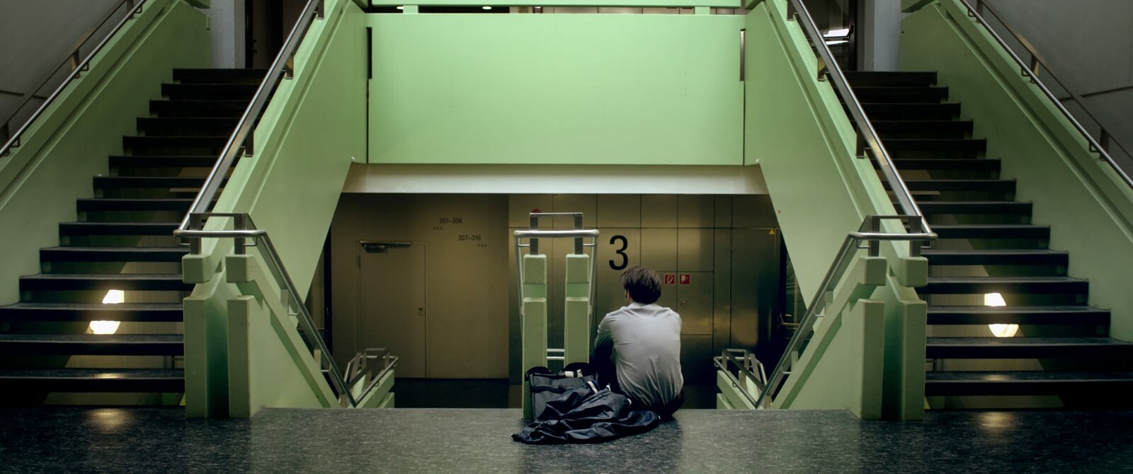 Michael Gewa (Dimitrij Schaad) alleine im Schulhaus. Um die Lage in den Griff zu bekommen, muss er sich nun entscheiden, ob er die Schule verlässt oder einen Überwachungsapparat in seinem Klassenzimmer aufstellt, der sein Verhalten im Unterricht verarbeiten und bewerten soll. Er entscheidet sich für eine Kampfansage - für Freiheit, Privatsphäre und Menschenwürde.Bild: © BR, HFF München / BR/HFF München