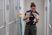 Paradiesvogel-DatesKeeper Kira Babuska carries fennec foxes.Bild: © Animal Planet / Discovery Communications