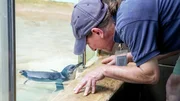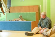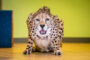 Bisons als LeihmütterEin Gepard wird im Schulungsraum trainiert.Bild: © ORF/Discovery/Animal Planet/Andrew Bisdale