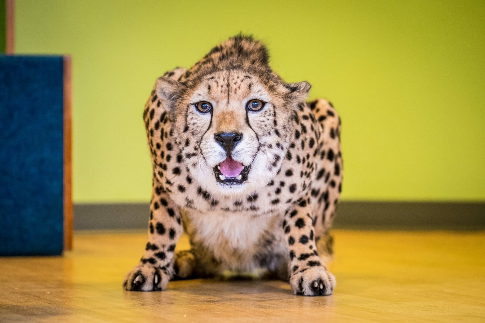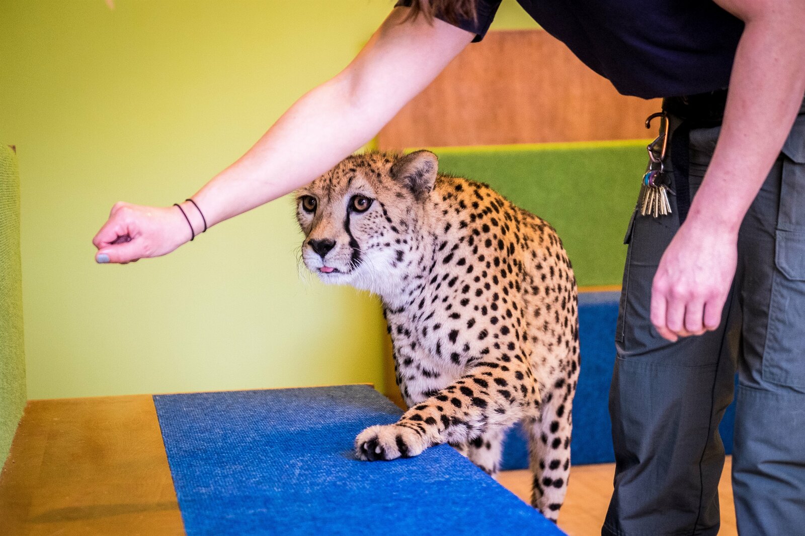 Bisons als LeihmütterEin Gepard wird im Schulungsraum trainiert.Bild: © Andrew Bisdale / Discovery Communications / Animal Planet.