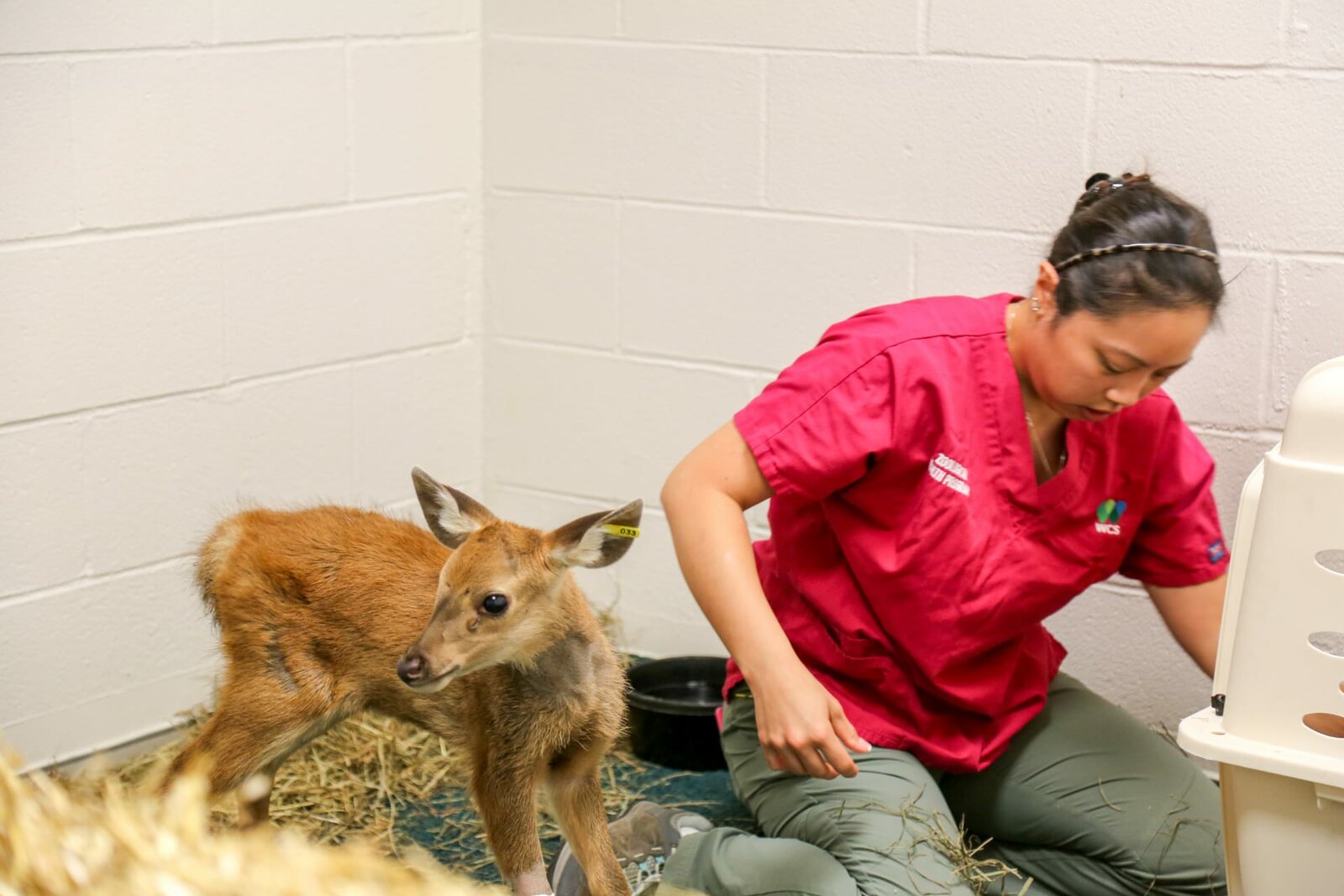 Zwei Hirschkälber in NotDingo and Keepers are in a classroom.Bild: © Charlotte Maher Levy / Animal Planet / Photobank. / Discovery Communications, LLC