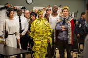 Halloween ist Weihnachten für Arschgeigen"Brooklyn Nine-Nine", "Halloween ist Weihnachten für Arschgeigen." Amy hasst Halloween. An diesem Tag scheinen die Menschen auszuflippen und die Ermittler haben alle Hände voll zu tun, die öffentliche Ordnung wiederherzustellen. Indessen riskiert Jake gegenüber Captain Holt eine dicke Lippe. Großspurig behauptet er, bis spätestens um Mitternacht die Tapferkeitsmedaille unbemerkt aus dem Büro seines Chefs gestohlen zu haben. Andernfalls will Jake die nächsten Wochenenden unbezahlt durcharbeiten. Siegesgewiss lässt sich Holt auf die Wette ein.Im Bild (v.li.): Stephanie Beatriz (Rosa Diaz), André Braugher (Ray Holt), Dirk Blocker (Hitchcock), Chelsea Peretti (Gina Linetti), Melissa Fumero (Amy Santiago), Joel McKinnon (Scully), Terry Crews (Terry Jefford), Andy Samberg (Jake Peralta).Bild: © NBC