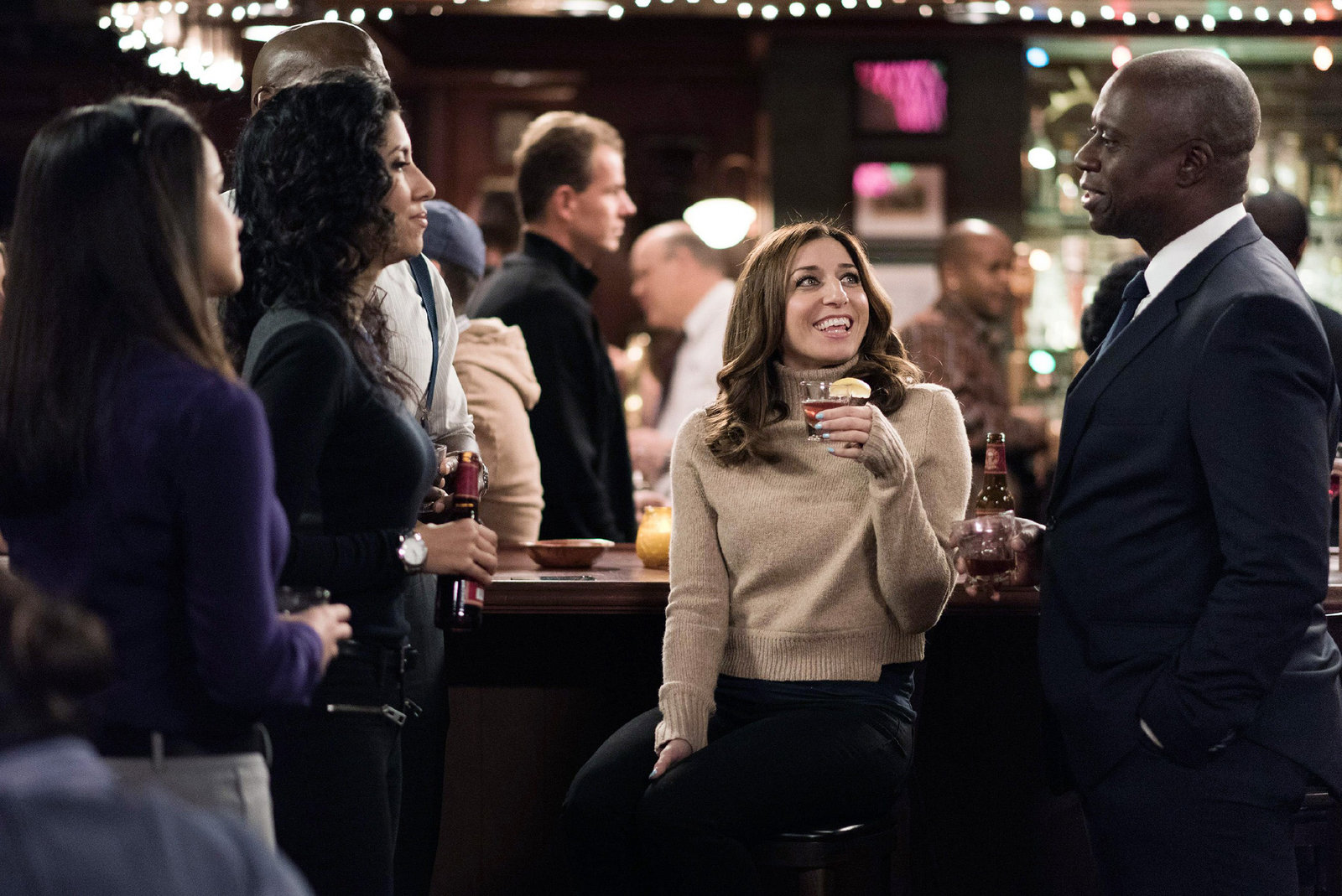 Junggesell/innen-Party(v.l.n.r.) Captain Ray Holt (André Braugher); Jake Peralta (Andy Samberg); Terry Jeffords (Terry Crews); Charles Boyle (Joe Lo Truglio)Bild: © 2018 UNIVERSAL TELEVISON LLC. All rights reserved. / John P. Fleenor Lizenzbild frei