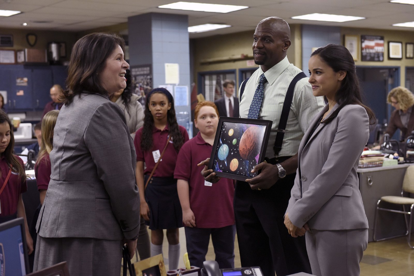 Tickende Uhren(v.l.n.r.) Jake Peralta (Andy Samberg); Amy Santiago (Melissa Fumero); Terry Jeffords (Terry Crews); Charles Boyle (Joe Lo Truglio); Captain Ray Holt (André Braugher); Sergeant Knox (Sean Astin)Bild: © 2019 UNIVERSAL TELEVISION LLC. All rights reserved. / John P. Fleenor Lizenzbild frei
