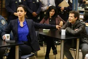 Wir fangen Verbrecher und sehen gut dabei ausJake Peralta (Andy Samberg, l.); Amy Santiago (Melissa Fumero, r.)Bild: © Beth Dubber / © 2013 NBC Studios LLC. All Rights Reserved. / Beth Dubber