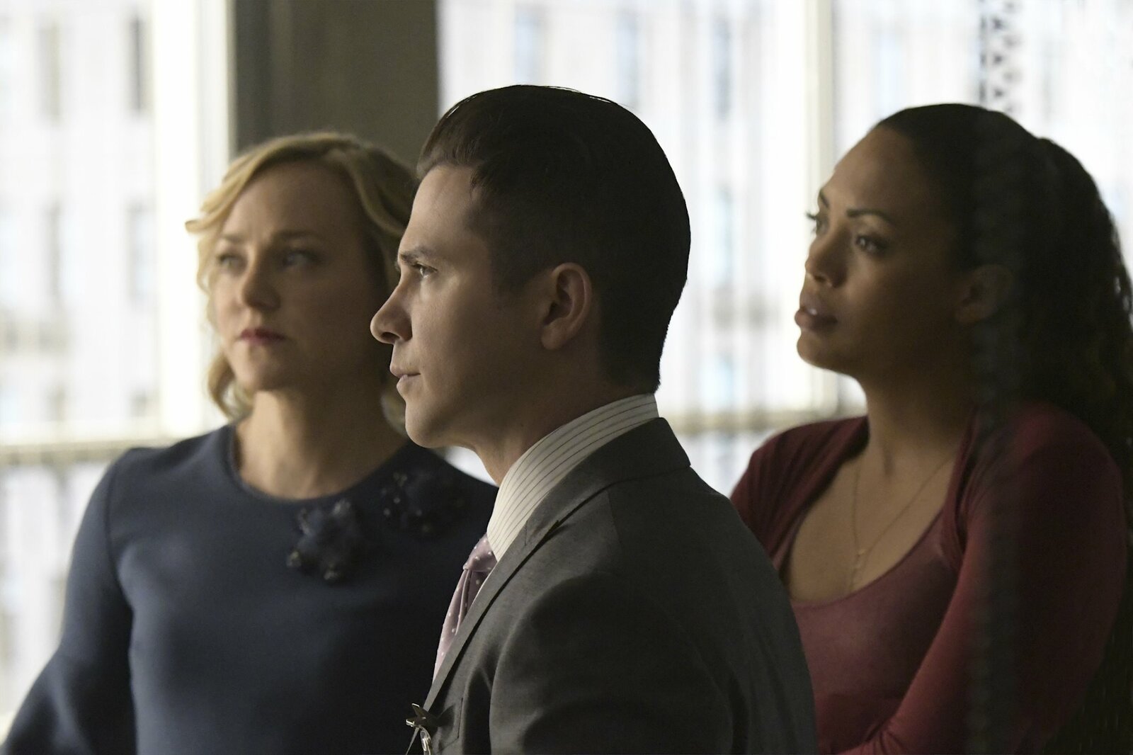 Am Tag, als der Regen kam(v.l.n.r.) Taylor Rentzel (MacKenzie Meehan); Dr. Jason Bull (Michael Weatherly); Benny Colón (Freddy Rodríguez)Bild: © 2019 CBS Broadcasting, Inc. All Rights Reserved. / Phil Caruso Lizenzbild frei