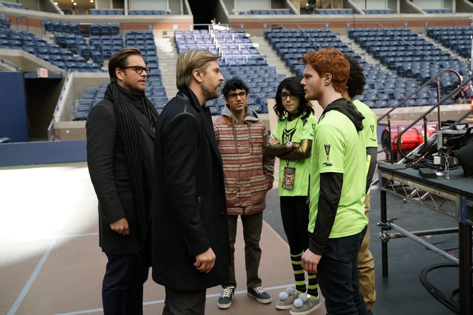 ZitterpartieAusgerechnet beim wichtigsten E-Sports-Turnier der Saison versaut Computerspiel-Profi Jace Rundle (Omar Maskati, M.) seinem Team (Alexa Mansour, 2.v.r. und Nicholas Barasch, r.) den Sieg. Bull (Michael Weatherly, l.) soll helfen, dessen Ex-Boss Vin (Jayce Bartok, 2.v.l.) wegen Verleumdung zu verklagen, denn der behauptet, dass es Absicht war ...Bild: © 2016 CBS Broadcasting, Inc. All Rights Reserved Lizenzbild frei