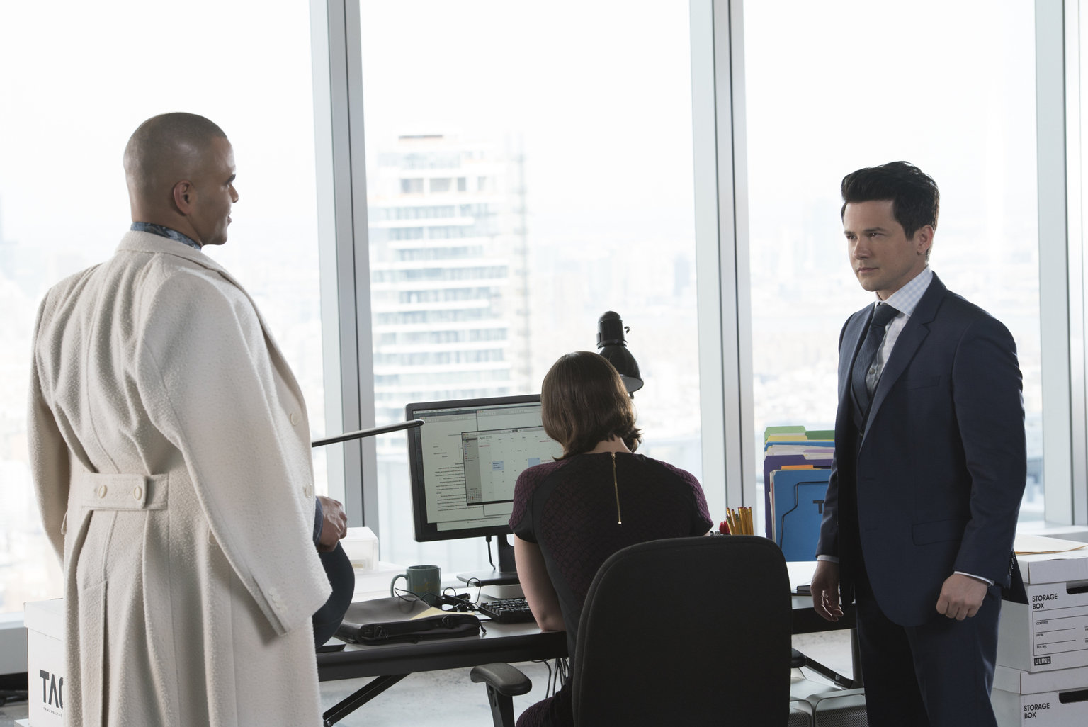Die wahre GeschichteHat sie oder hat sie nicht? Bulls (Michael Weatherly, r.) neueste Klientin Reese Burton (Celeste Arias, M.) soll einen Spitzenathleten ermordet haben, allerdings behauptet sie, von jenem vergewaltigt worden zu sein. Aber auch für Anwalt Benny (Freddy Rodriguez, l.) hält der Fall eine Überraschung bereit ...Bild: © 2016 CBS Broadcasting, Inc. All Rights Reserved. Lizenzbild frei