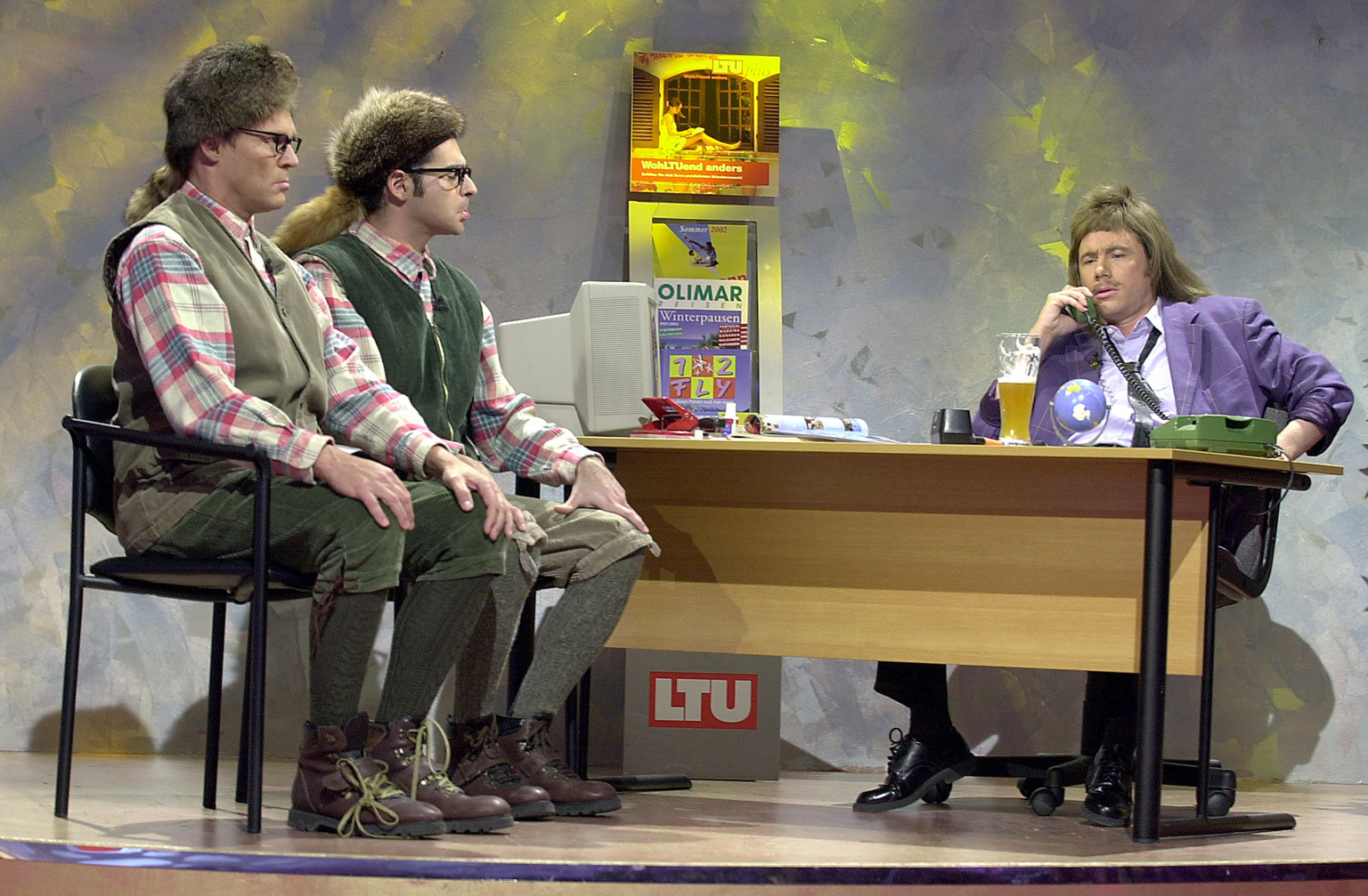 Christian Tramitz (l.), Rick Kavanian (M.) und Michael "Bully" Herbig (r.) spielen im Reisebüro eine chaotische Situation nach.Bild: © ProSieben / S.E.T. Eigenproduktionsbild frei