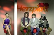 Herzblatt: Diana Herold (l.), Michael "Bully" Herbig (2.v.r.), Rick Kavanian (r.) und Christian Tramitz (2.v.l.) machen vor nichts Halt, nehmen alles und alle gnadenlos auf die Schippe.Bild: © ProSieben