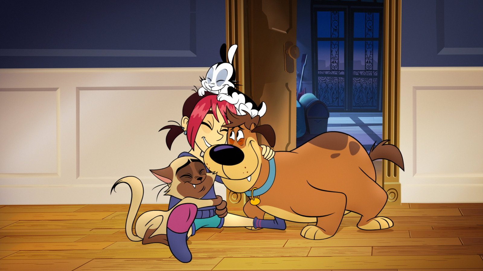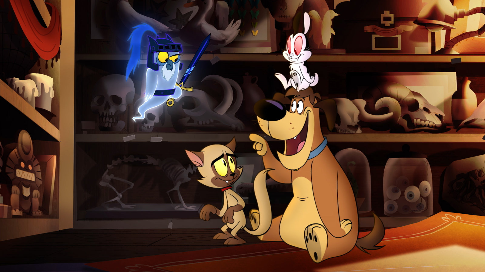 Chesters Haus des SchreckensIn the back: Mina Monroe(voiced by Kari Wahlgren) In the front, from L-R: Harold (voiced by Brian Kimmet), Chester (voiced by Sean Astin), Bunnicula (voiced by Chris Kattan)Bild: © Boomerang (DE) / Warner Bros. Entertainment Inc.