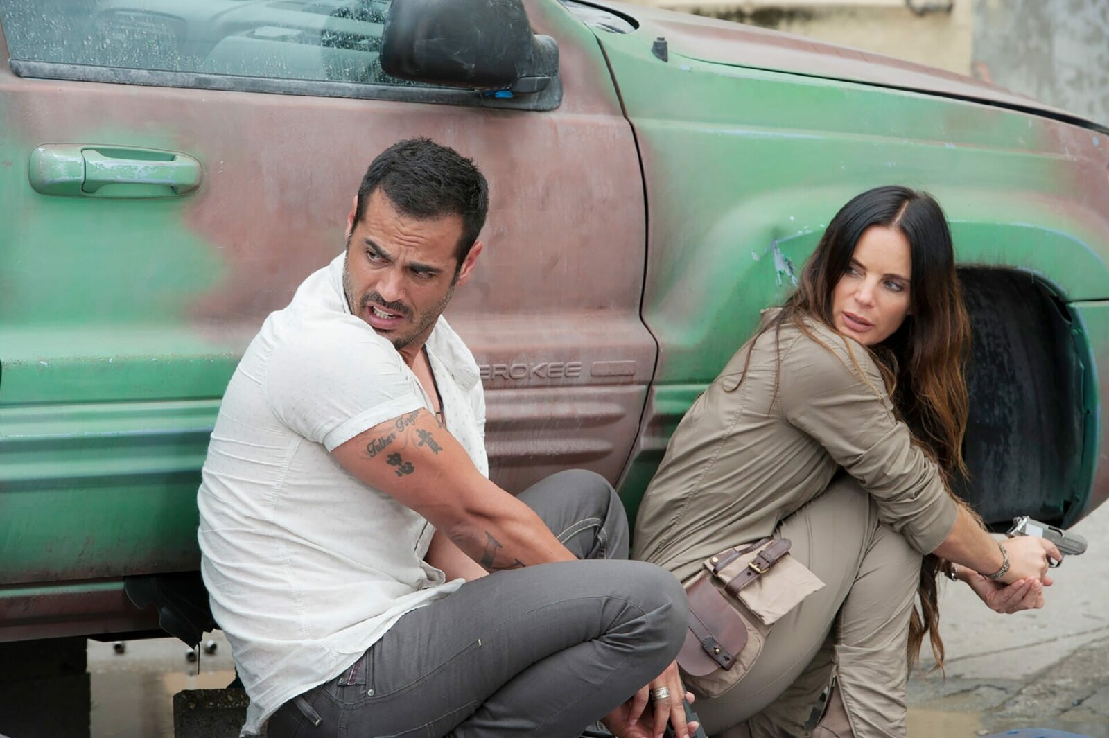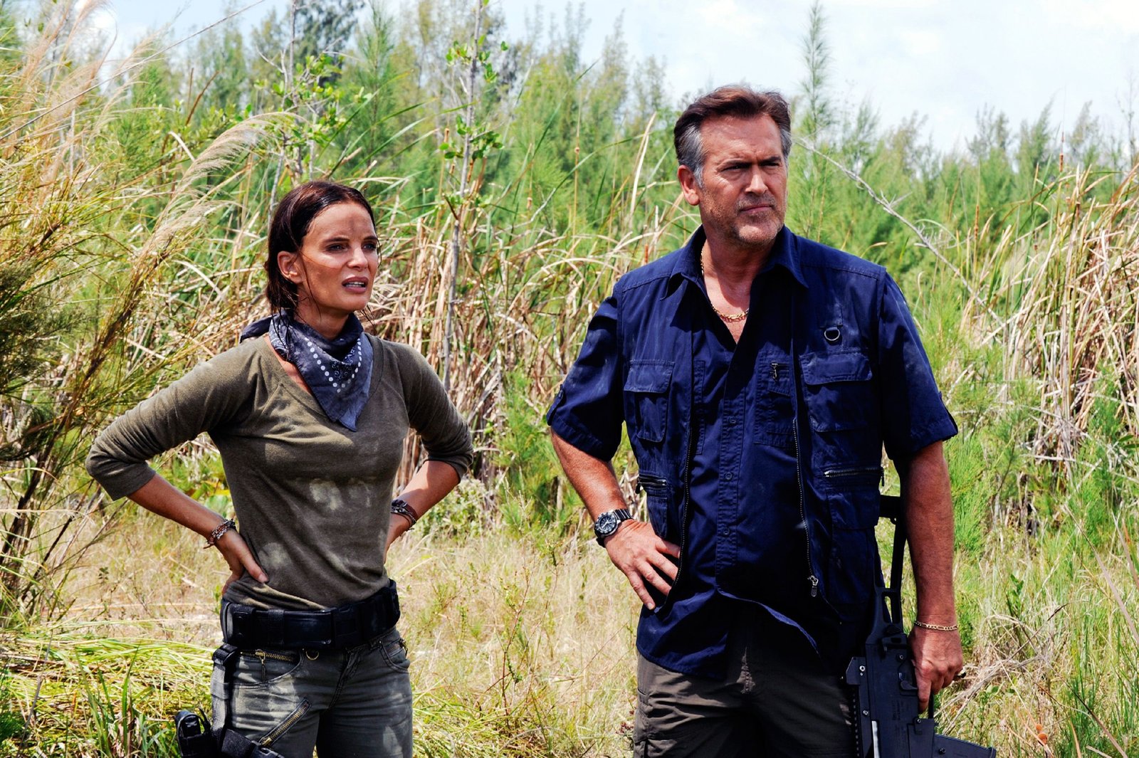 GotteskriegerFiona Glenanne (Gabrielle Anwar) und Sam Axe (Bruce Campbell) verfolgen einen Verdächtigen bis in ein hochgesichtertes Militärcamp.Bild: © RTL NITRO/Twentieth Centur