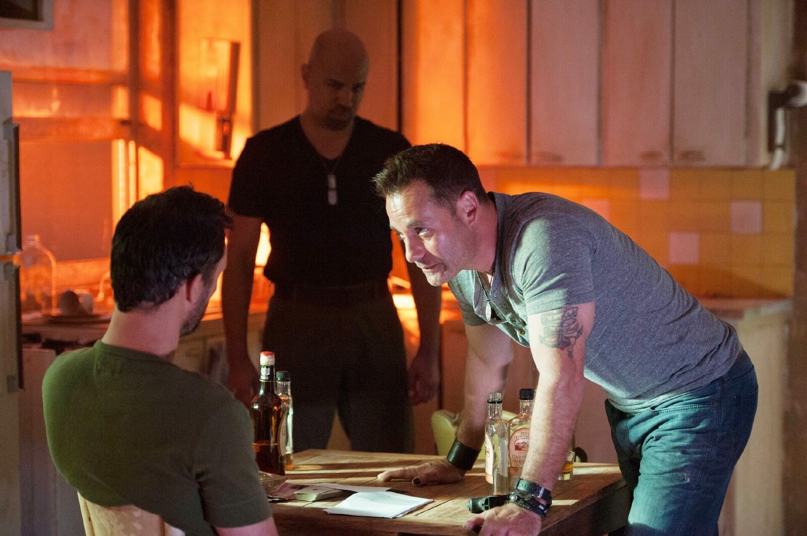 Großes KaliberV.l.: Sam Axe (Bruce Campbell), Michael Westen (Jeffrey Donovan) und Jesse Porter (Coby Bell) sollen für die CIA einen Waffeningenieur überprüfen. Doch die drei merken schnell, dass mit dem gar nicht zu spaßen ist.Bild: © RTL NITRO/USA Network/Davi