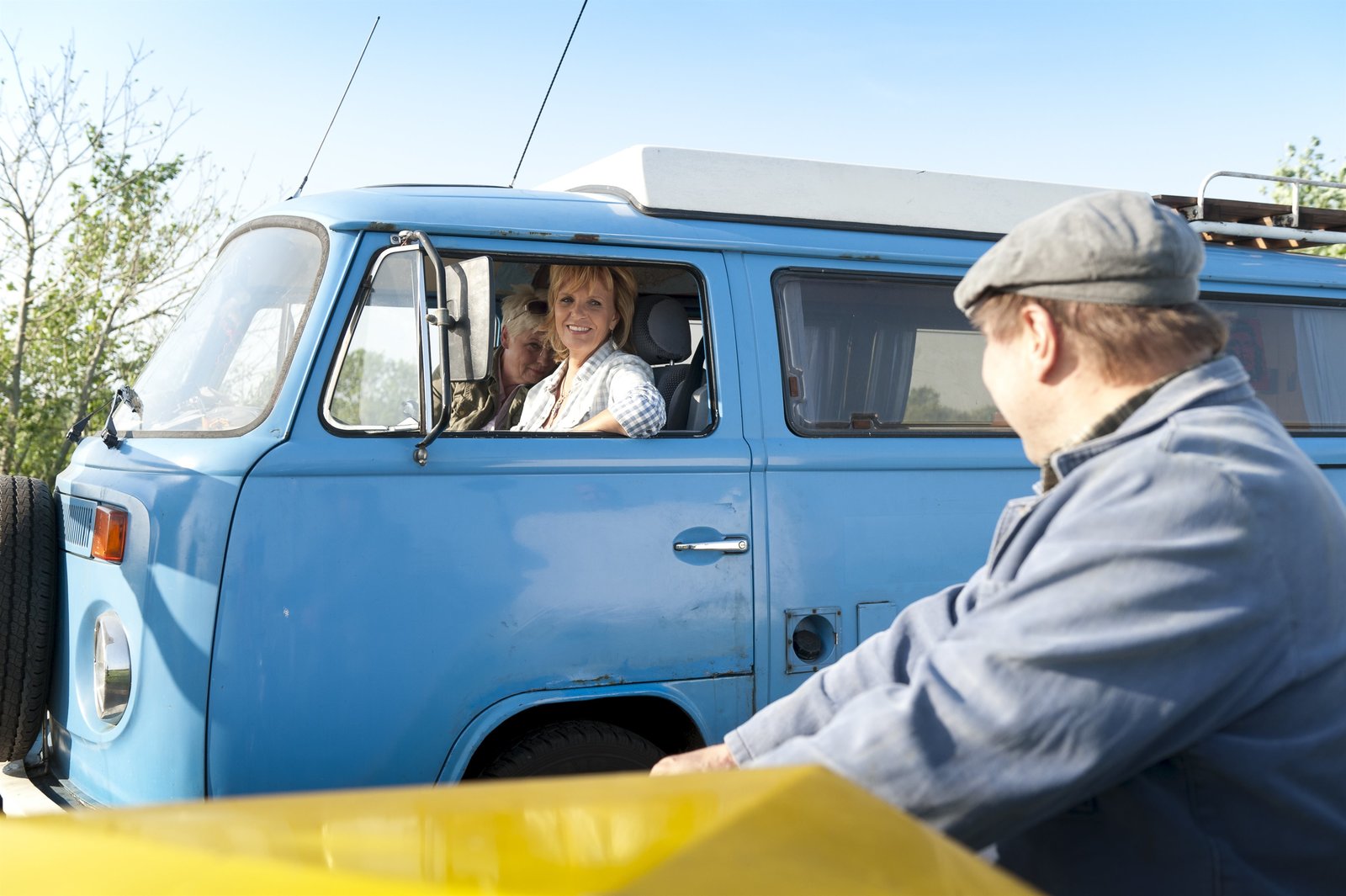 Nägel mit KöppenTäglich sieht Petra Koslowski (Ulrike Kriener, m.) mit Freundin Inge (Geburg Jahnke, l.), wie Bauer Knud (Jan Peter Heyne, r.) einen Brief versendet. Freundin Inge weiß, mit wem der Bauer in Kontakt steht..Bild: © ZDF und Boris Laewen (bola)