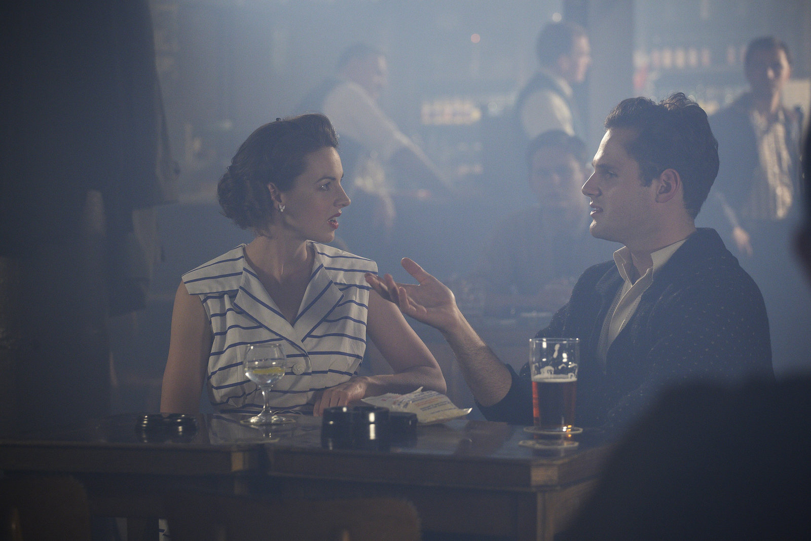 VeränderungenJenny Lee (Jessica Raine,l.) und Alec Jesmond (Leo Starr, r.) verbringen den Abend in einer Bar.Bild: © ZDF und Mark Johnson