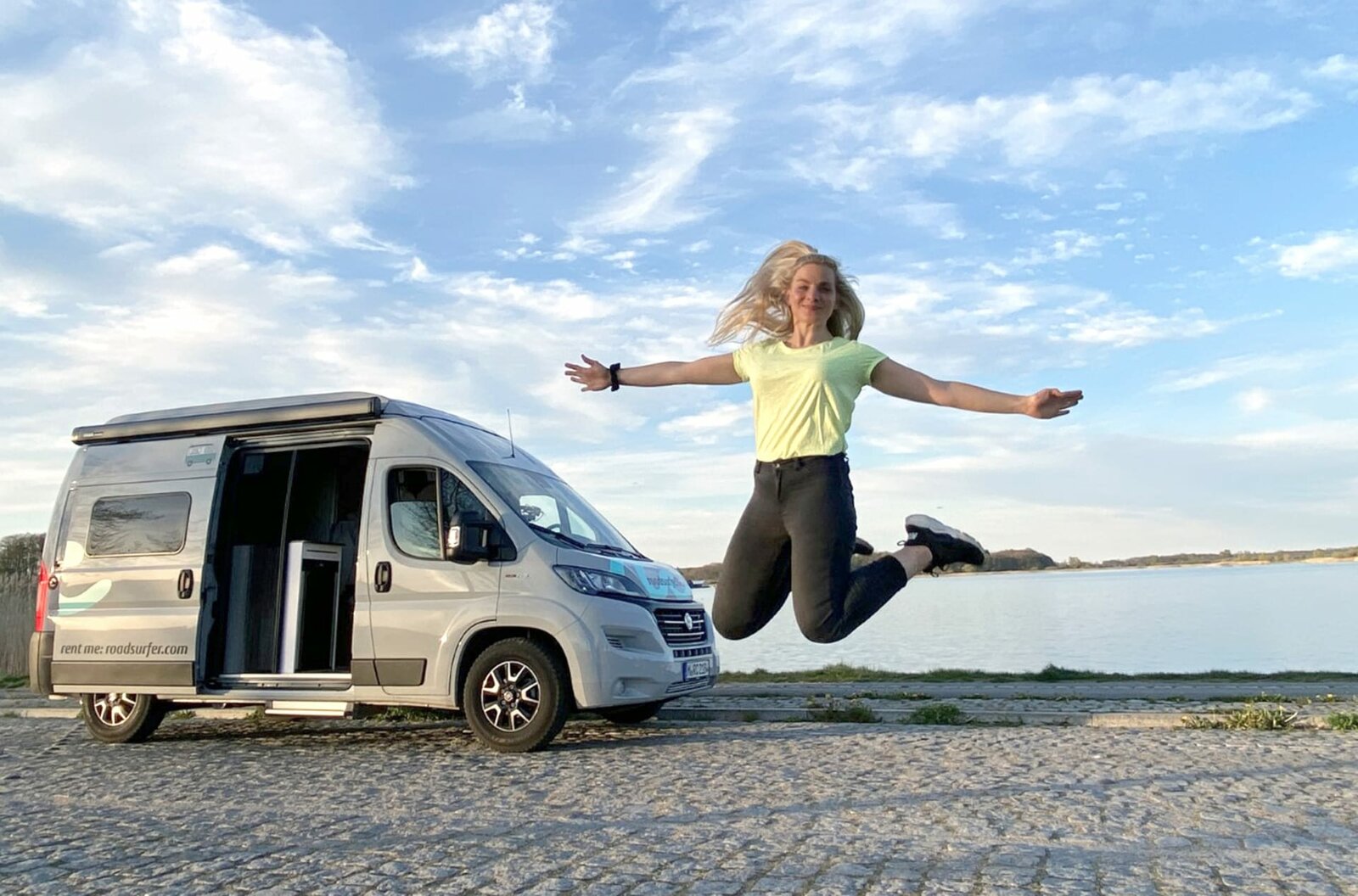 Campervan-Roadtrip an die Mecklenburgische SeenplatteReporterin Maike Tschorn an der mecklenburgischen Seenplatte.Bild: © HR/Tanja Höschele