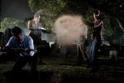 Nach dem SturmCASTLE - "After the Storm" - After four seasons of "will they" or "won't they," Richard Castle and Kate Beckett finally gave in to their feelings for each other in the much anticipated Season 4 finale. Season 5 picks up on the proverbial morning after, with Castle and Beckett facing new questions -- Was this a one-time fling, or are they now a couple? But before they find the answers, they must take on the forces responsible for Beckett's mother's murder that now threaten Kate Beckett's life. The Season 5 premiere of "Castle" airs MONDAY, SEPTEMBER 24 (10:01-11:00 p.m. ET) on the ABC Television Network. Also in the episode, Jack Coleman ("Heroes") guest stars as a well-liked U.S. Senator who finds himself in conflict with Beckett. (ABC/VIVIAN ZINK) NATHAN FILLION, SEAMUS DEVER, JON HUERTASBild: © Universal TV