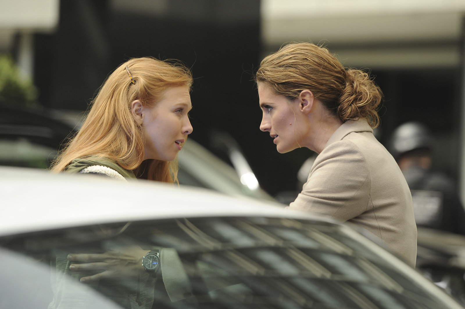 Das neue GesichtIn einem Springbrunnen wird die Leiche einer jungen Frau gefunden. Lanie Parish (Tamala Jones, l.) teilt Kate Beckett (Stana Katic, r.) die Todesursache mit.Bild: © Universal TV