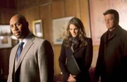 Der BriteL-R: Colin Hunt (Brett Tucker), Kate Beckett (Stana Katic), Nigel Wyndham (Charles Shaughnessy)Bild: © Universal Channel